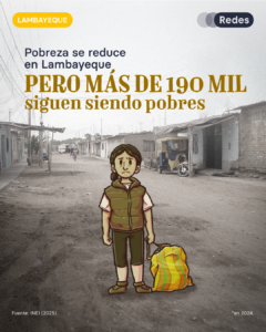 En 2024, Lambayeque dio un paso importante en la lucha contra la pobreza. Su tasa cayó de 17.9 % a 14 %, convirtiéndose en la cuarta región con menor pobreza del país (INEI, 2025). Pero aún no vuelve al punto en el que estaba antes de la pandemia: en 2019, la pobreza en la región era de solo 10 %.